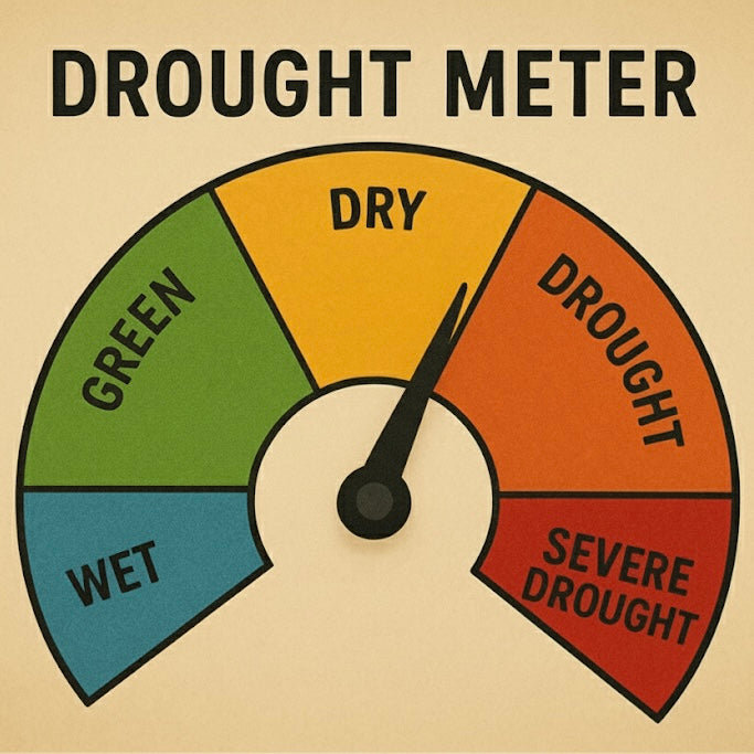 Please note: Hollyhock Hill’s ‘Drought Meter’ is an independent assessment of past weather in Ballarat, based primarily on rainfall data for the previous 3 months. It is not an indicator of longer-term hydrological conditions or of any official drought declarations.