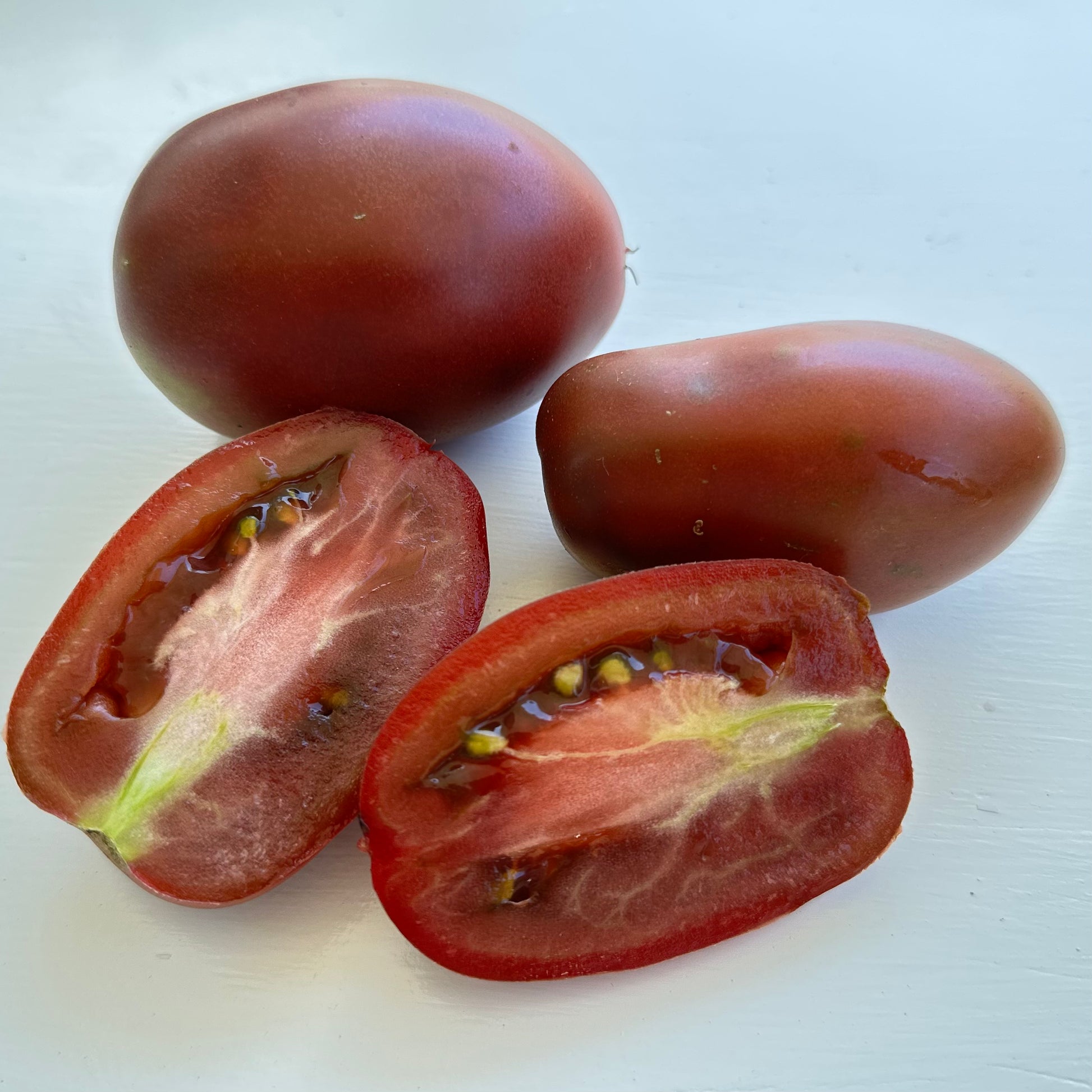 Ukranian heirloom tomato with plum-shaped, dark reddish-purple fruit with a rich, sweet zesty flavour. Early, high-yielding variety. Excellent for slicing, salads and preserving. Indeterminate. Can also be grown in pots. Grow in full sun in moist, well-drained soil and feed regularly with a liquid fertiliser. Sow in seed trays in Spring and plant out after last frost. Sowing depth 6mm.